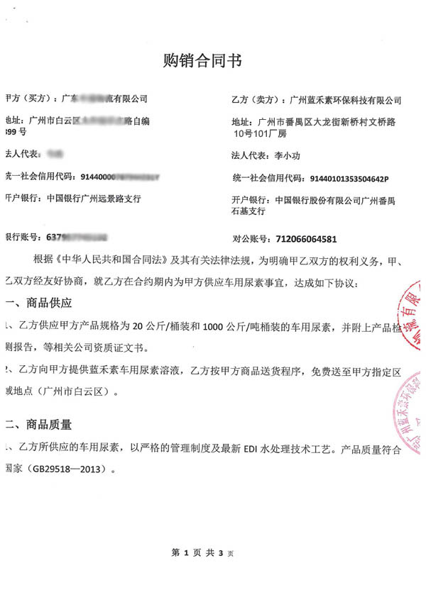 廣州藍禾素環??萍加邢薰荆且患覍I生產車用尿素溶液,尿素脫硝劑氮氧化物還原劑